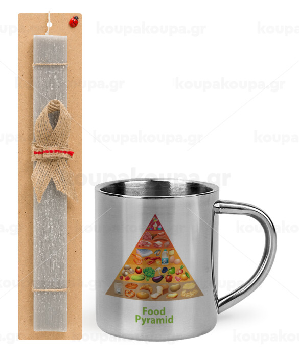 Food pyramid chart, Easter Set, metallic thermal cup (300ml) & Easter aromatic flat candle (30cm) (GRAY)