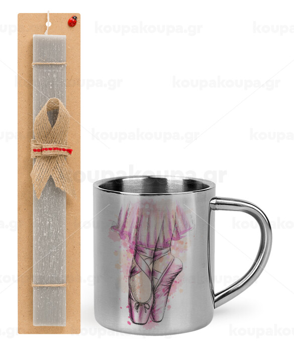 Ballerina shoes, Easter Set, metallic thermal cup (300ml) & Easter aromatic flat candle (30cm) (GRAY)