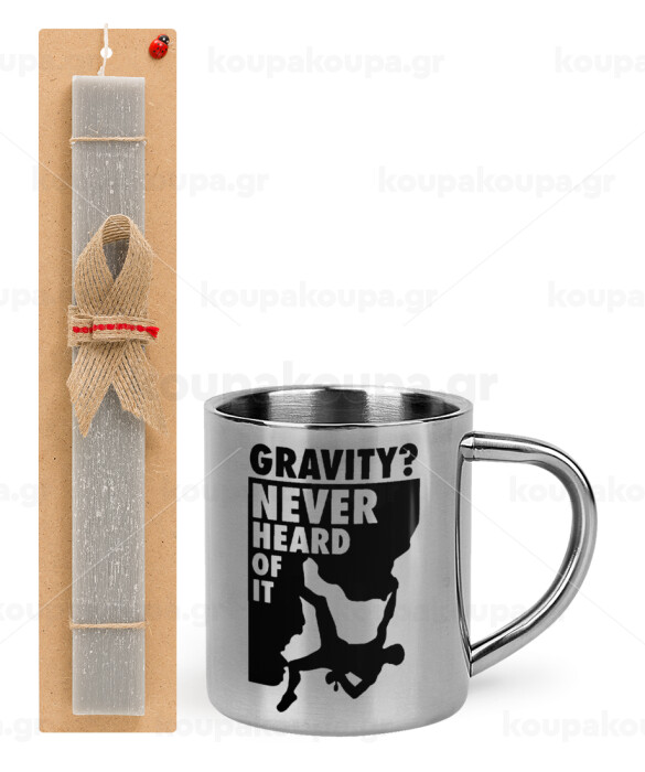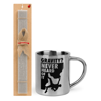 Gravity? Never heard of that!, Easter Set, metallic thermal cup (300ml) & Easter aromatic flat candle (30cm) (GRAY)