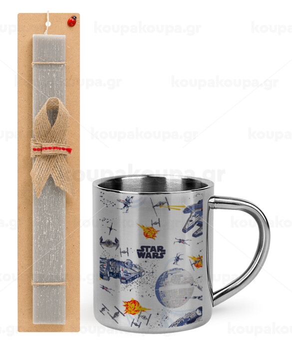 Star wars drawing, Easter Set, metallic thermal cup (300ml) & Easter aromatic flat candle (30cm) (GRAY)