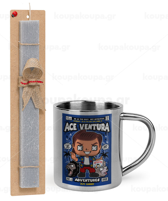 Ace Ventura: Pet Detective, Easter Set, metallic thermal cup (300ml) & Easter aromatic flat candle (30cm) (GRAY)