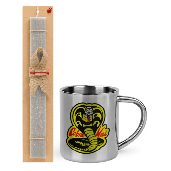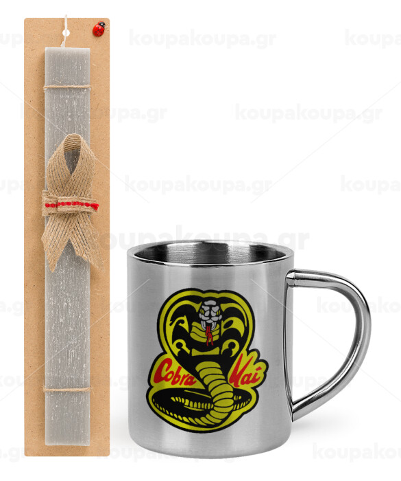 Cobra Kai Yellow, Easter Set, metallic thermal cup (300ml) & Easter aromatic flat candle (30cm) (GRAY)