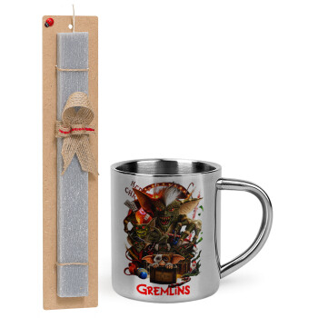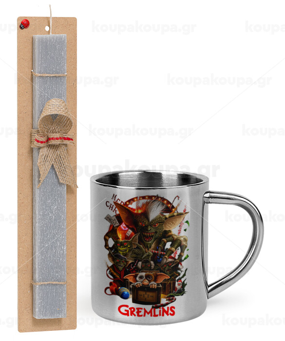 Gremlins, Easter Set, metallic thermal cup (300ml) & Easter aromatic flat candle (30cm) (GRAY)