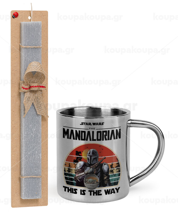 Mandalorian, Easter Set, metallic thermal cup (300ml) & Easter aromatic flat candle (30cm) (GRAY)