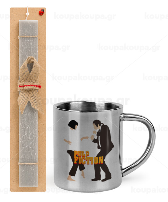 Pulp Fiction dancing, Easter Set, metallic thermal cup (300ml) & Easter aromatic flat candle (30cm) (GRAY)
