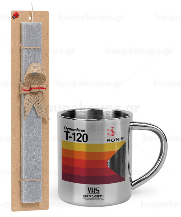 VHS sony dynamicron T-120, Easter Set, metallic thermal cup (300ml) & Easter aromatic flat candle (30cm) (GRAY)