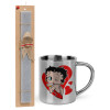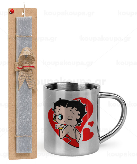 Betty Boop, Easter Set, metallic thermal cup (300ml) & Easter aromatic flat candle (30cm) (GRAY)