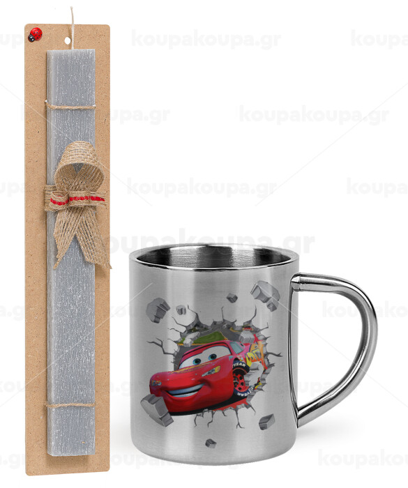 Brick McQueen, Easter Set, metallic thermal cup (300ml) & Easter aromatic flat candle (30cm) (GRAY)