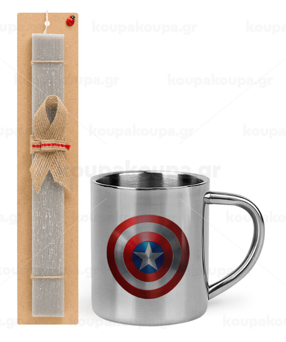 Captain America, Easter Set, metallic thermal cup (300ml) & Easter aromatic flat candle (30cm) (GRAY)