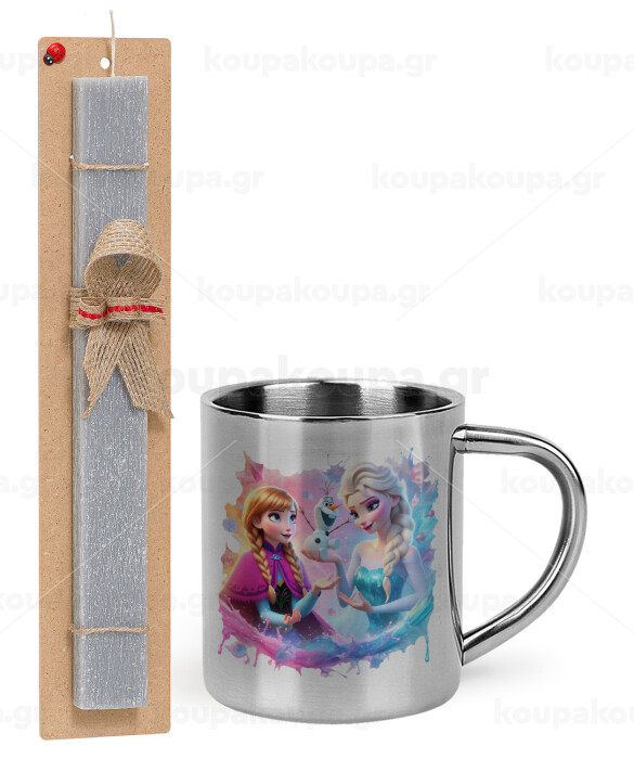 Elsa & Anna Princess, Easter Set, metallic thermal cup (300ml) & Easter aromatic flat candle (30cm) (GRAY)