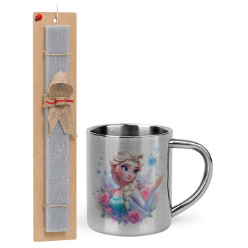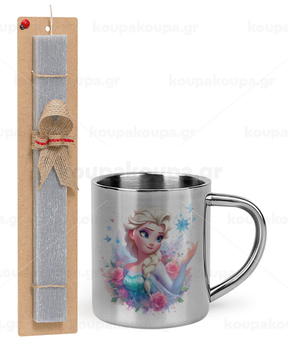 Elsa Princess, Easter Set, metallic thermal cup (300ml) & Easter aromatic flat candle (30cm) (GRAY)