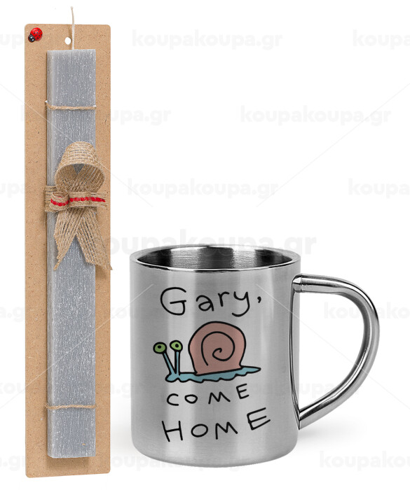 Gary come home, Easter Set, metallic thermal cup (300ml) & Easter aromatic flat candle (30cm) (GRAY)