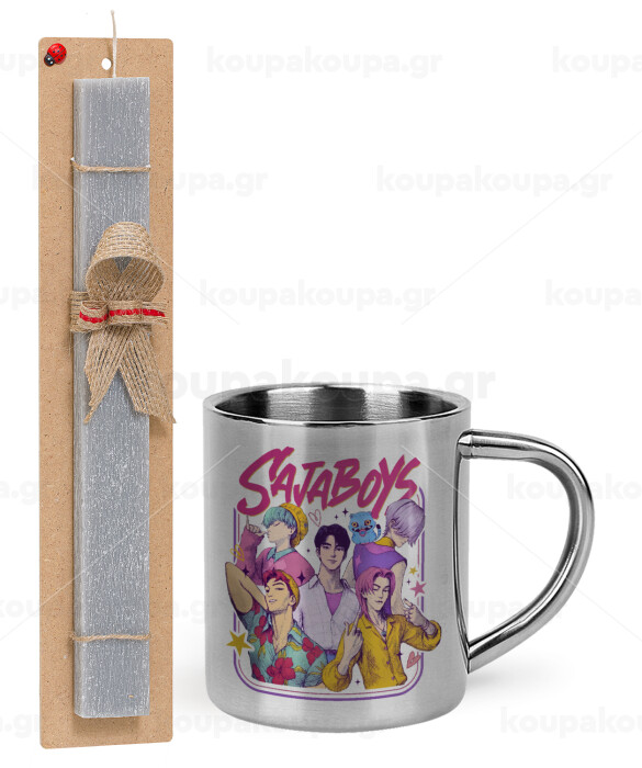 Huntrix Saja Boys, Easter Set, metallic thermal cup (300ml) & Easter aromatic flat candle (30cm) (GRAY)