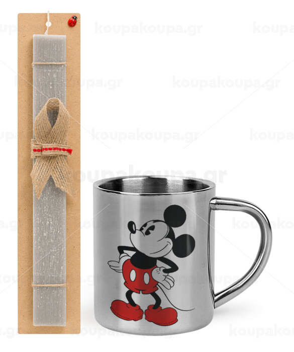 Mickey Classic, Easter Set, metallic thermal cup (300ml) & Easter aromatic flat candle (30cm) (GRAY)