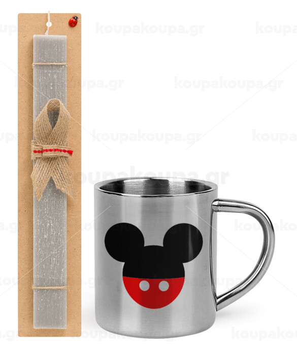 Mickey head, Easter Set, metallic thermal cup (300ml) & Easter aromatic flat candle (30cm) (GRAY)