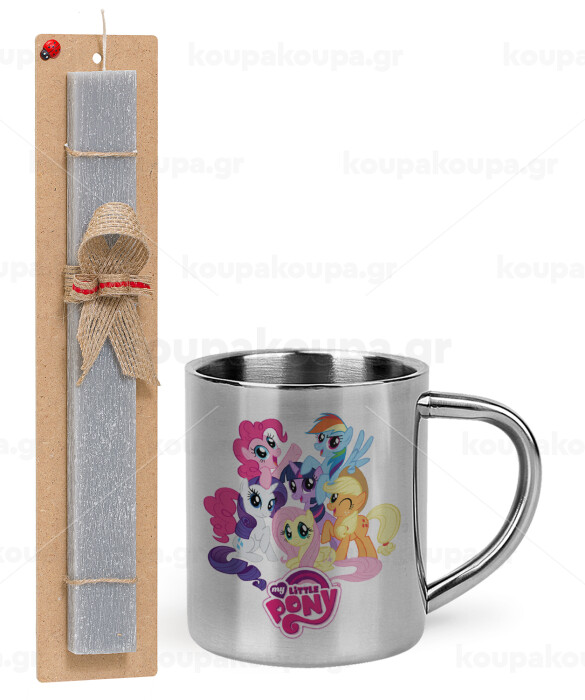 My Little Pony, Easter Set, metallic thermal cup (300ml) & Easter aromatic flat candle (30cm) (GRAY)
