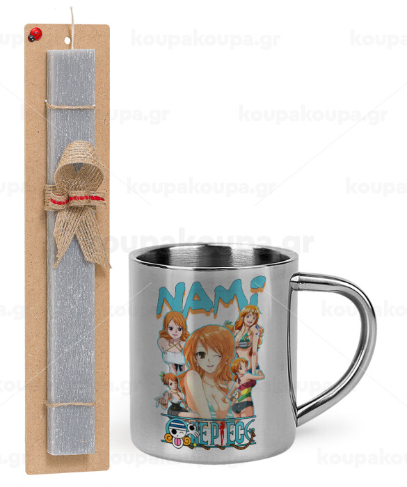 Nami One Piece, Easter Set, metallic thermal cup (300ml) & Easter aromatic flat candle (30cm) (GRAY)