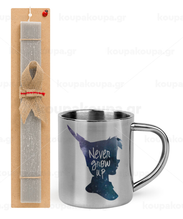 Never Grow UP, Easter Set, metallic thermal cup (300ml) & Easter aromatic flat candle (30cm) (GRAY)