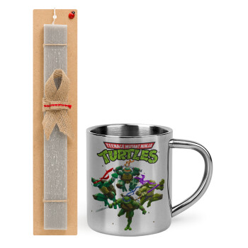 Ninja turtles, Easter Set, metallic thermal cup (300ml) & Easter aromatic flat candle (30cm) (GRAY)