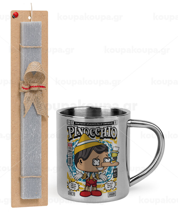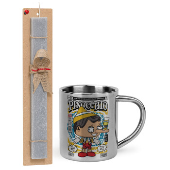 Pinocchio, Easter Set, metallic thermal cup (300ml) & Easter aromatic flat candle (30cm) (GRAY)