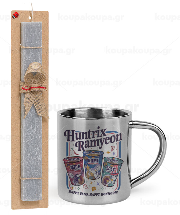Ramyeon Huntrix, Easter Set, metallic thermal cup (300ml) & Easter aromatic flat candle (30cm) (GRAY)