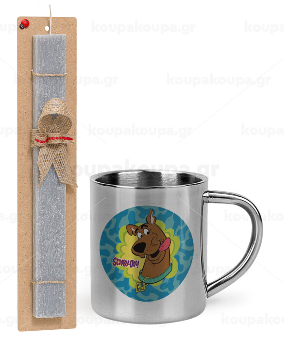 Scooby Doo, Easter Set, metallic thermal cup (300ml) & Easter aromatic flat candle (30cm) (GRAY)
