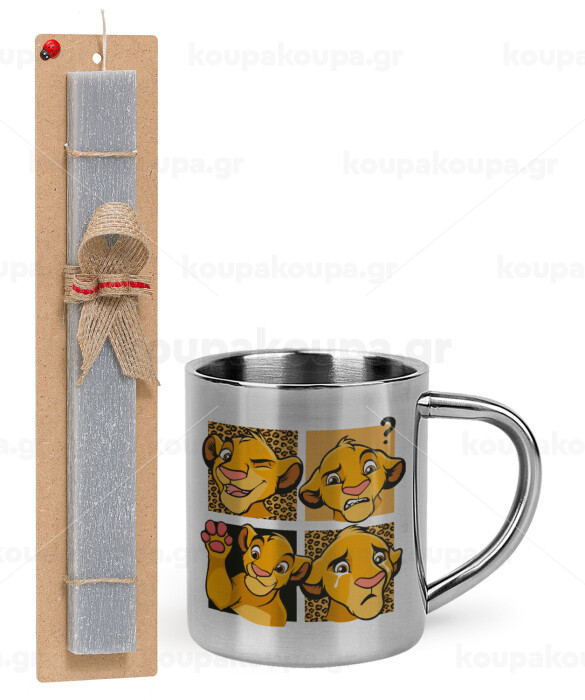 Simba, lion king, Easter Set, metallic thermal cup (300ml) & Easter aromatic flat candle (30cm) (GRAY)
