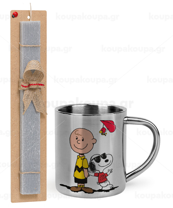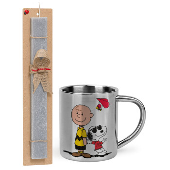 Snoopy & Joe, Easter Set, metallic thermal cup (300ml) & Easter aromatic flat candle (30cm) (GRAY)