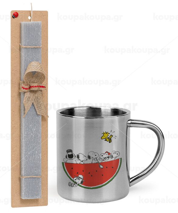 Snoopy summer, Easter Set, metallic thermal cup (300ml) & Easter aromatic flat candle (30cm) (GRAY)