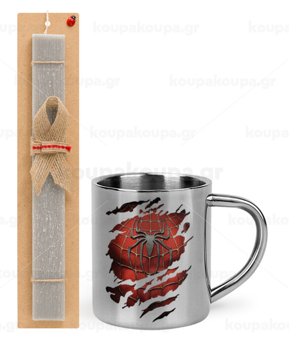 Spiderman cracked, Easter Set, metallic thermal cup (300ml) & Easter aromatic flat candle (30cm) (GRAY)