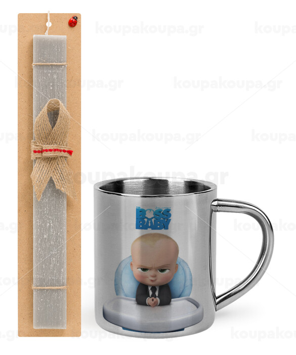The boss baby, Easter Set, metallic thermal cup (300ml) & Easter aromatic flat candle (30cm) (GRAY)