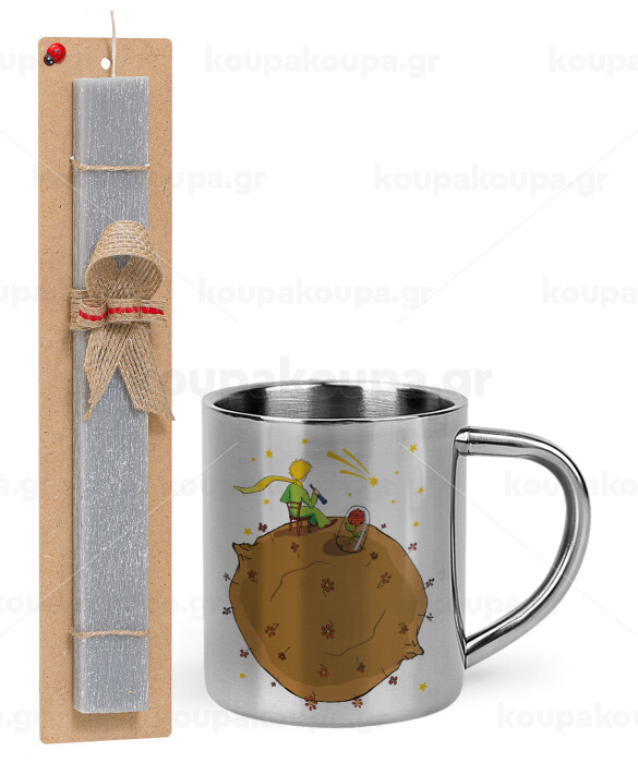 The Little prince planet, Easter Set, metallic thermal cup (300ml) & Easter aromatic flat candle (30cm) (GRAY)