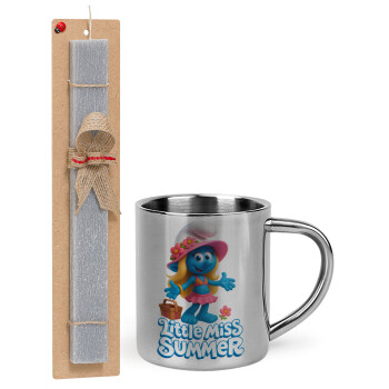 The Smurfs, Easter Set, metallic thermal cup (300ml) & Easter aromatic flat candle (30cm) (GRAY)