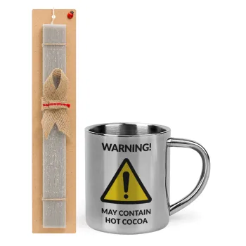 WARNING MAY CONTAIN HOT COCOA MUG PADDINGTON, Easter Set, metallic thermal cup (300ml) & Easter aromatic flat candle (30cm) (GRAY)