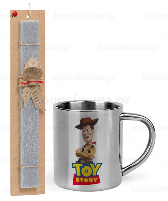 Woody cowboy, Easter Set, metallic thermal cup (300ml) & Easter aromatic flat candle (30cm) (GRAY)