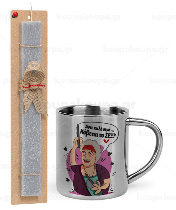 Αντε καλέ, σιγά, κόβεται το σέξ ;, Easter Set, metallic thermal cup (300ml) & Easter aromatic flat candle (30cm) (GRAY)