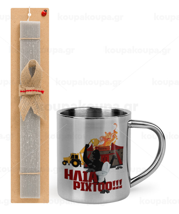 Ηλία ρίχτοοο!!!, Easter Set, metallic thermal cup (300ml) & Easter aromatic flat candle (30cm) (GRAY)