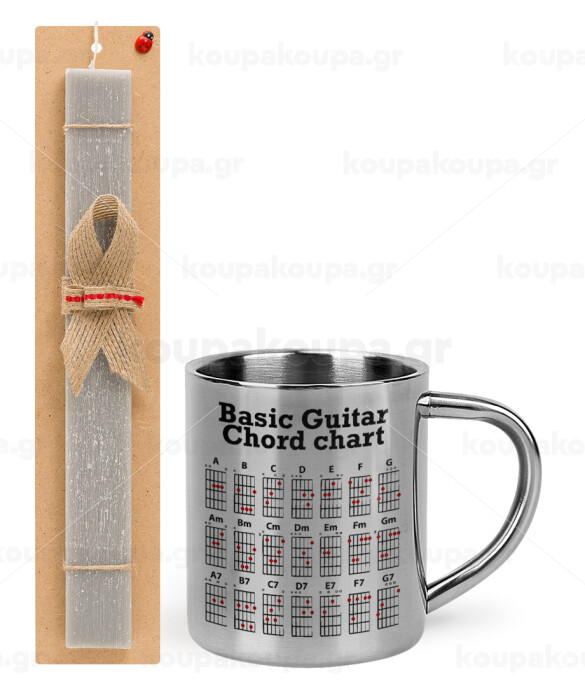 Guitar tabs, Easter Set, metallic thermal cup (300ml) & Easter aromatic flat candle (30cm) (GRAY)