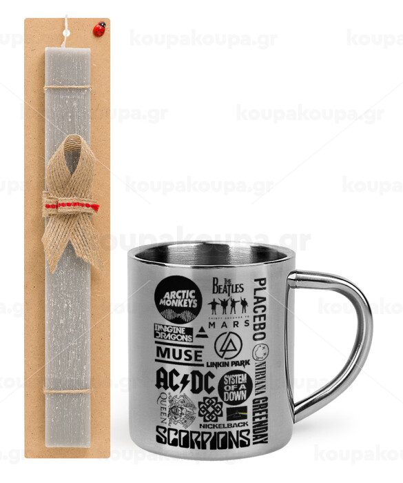 Best Rock Bands Collection, Easter Set, metallic thermal cup (300ml) & Easter aromatic flat candle (30cm) (GRAY)