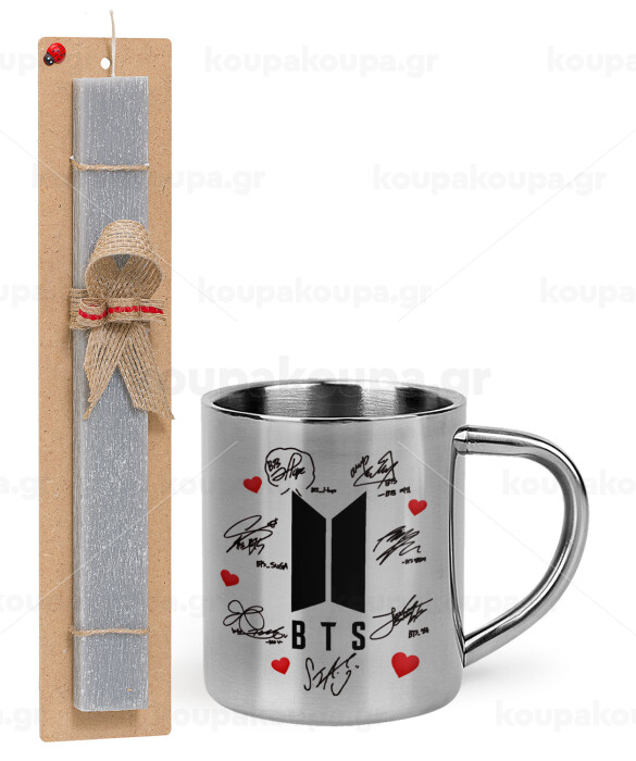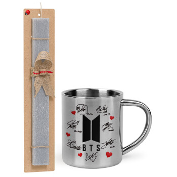 BTS signs, Easter Set, metallic thermal cup (300ml) & Easter aromatic flat candle (30cm) (GRAY)
