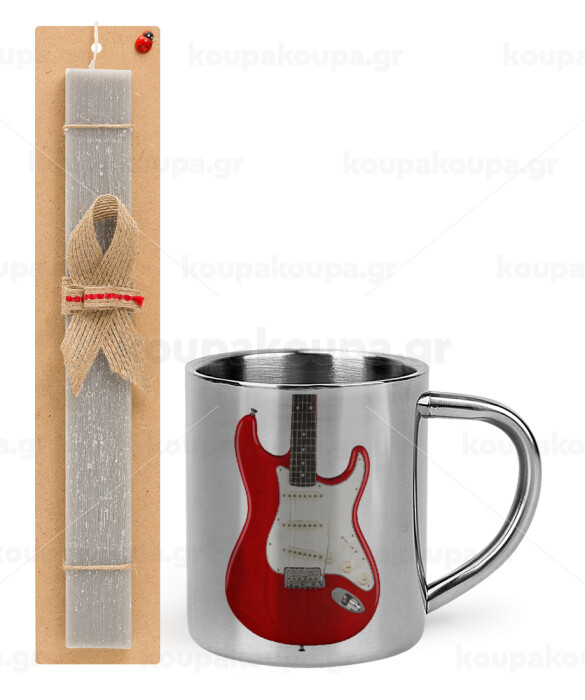 Guitar stratocaster, Easter Set, metallic thermal cup (300ml) & Easter aromatic flat candle (30cm) (GRAY)