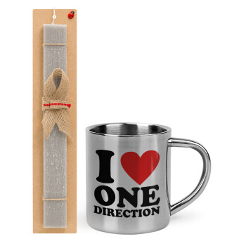 I Love, One Direction, Easter Set, metallic thermal cup (300ml) & Easter aromatic flat candle (30cm) (GRAY)