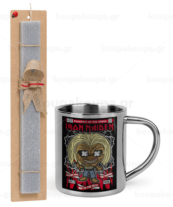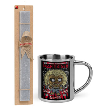 Iron maiden (eddie), Easter Set, metallic thermal cup (300ml) & Easter aromatic flat candle (30cm) (GRAY)