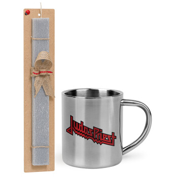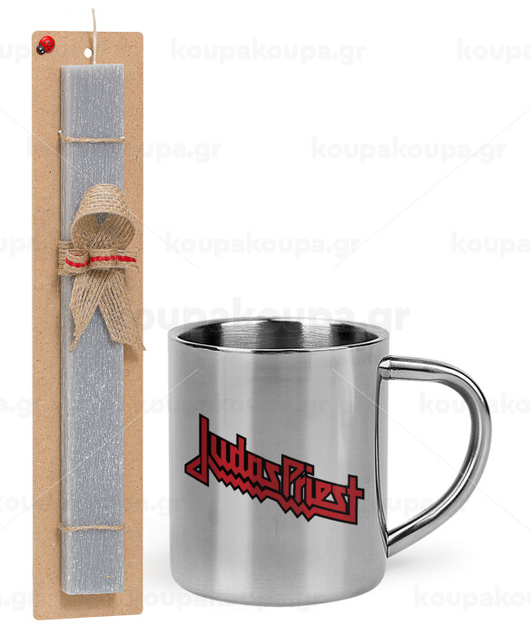 Judas Priest, Easter Set, metallic thermal cup (300ml) & Easter aromatic flat candle (30cm) (GRAY)