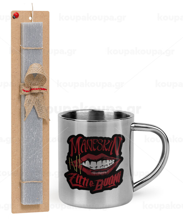 Maneskin lips, Easter Set, metallic thermal cup (300ml) & Easter aromatic flat candle (30cm) (GRAY)