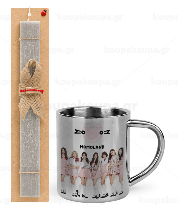 Momoland pink, Easter Set, metallic thermal cup (300ml) & Easter aromatic flat candle (30cm) (GRAY)