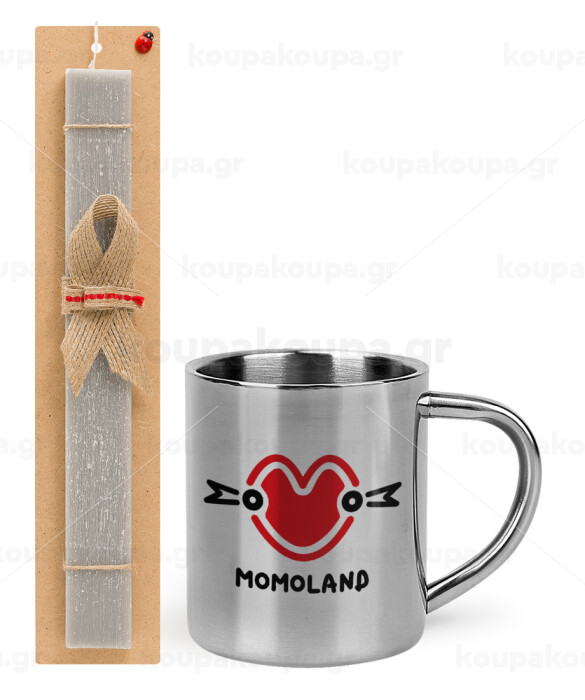 Momoland, Easter Set, metallic thermal cup (300ml) & Easter aromatic flat candle (30cm) (GRAY)