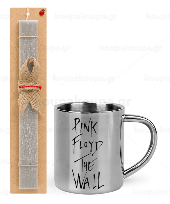 Pink Floyd, The Wall, Easter Set, metallic thermal cup (300ml) & Easter aromatic flat candle (30cm) (GRAY)