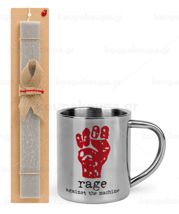 Rage against the machine, Easter Set, metallic thermal cup (300ml) & Easter aromatic flat candle (30cm) (GRAY)