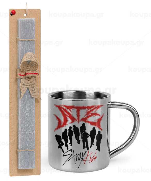 Stray Kids Boy band, Easter Set, metallic thermal cup (300ml) & Easter aromatic flat candle (30cm) (GRAY)